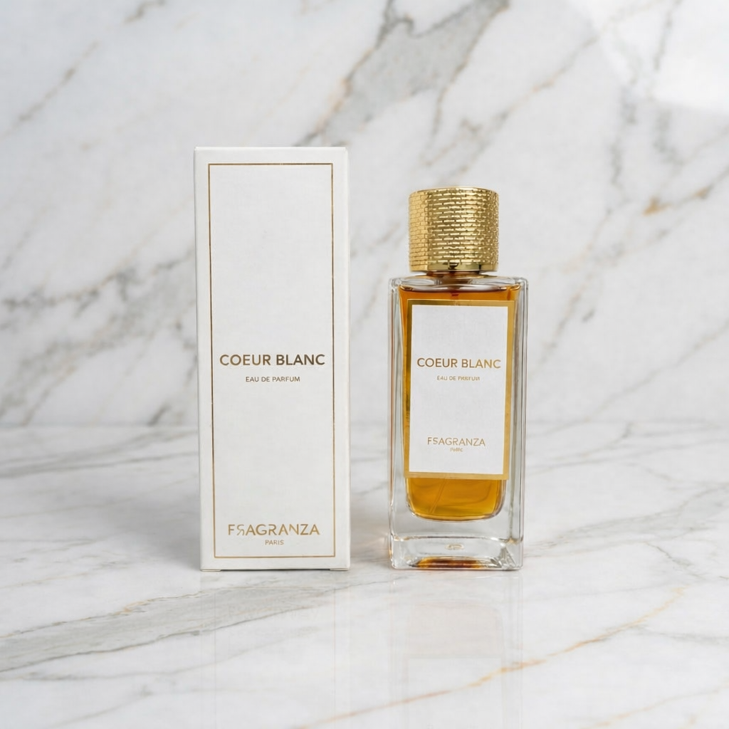 Cœur Blanc de Fragranza Paris est un parfum délicat qui associe la douceur de la vanille et de la noix de coco à la sophistication du bois de cèdre et à la pureté du musc blanc, pour un sillage élégant et réconfortant.